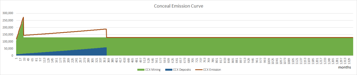 Conceal coin (₡CCX) emission is generated from two distinct sources:
