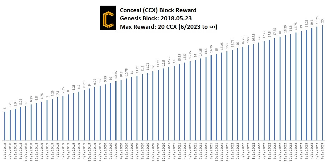 Conceal has a very unique block reward scheme that increases to a max block reward, instead of decreasing as in most other PoW coins. With this simple and logical approach we avoided the unfair enrichment of early miners during the initial stages of the project where mining difficulty is low and successfully reached one of the lowest coin emission curves throughout the crypto space without affecting mining profit. Conceal.Network miners get 100% of the PoW mining fees.